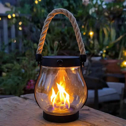 Make every night under the stars feel magical with this realistic flickering flame lantern. Solar-powered and weather-resistant, it's built for the outdoors—no plugs or batteries needed. The rustic rope handle makes it easy to hang or carry, and with Type-C recharging, you're always adventure-ready.